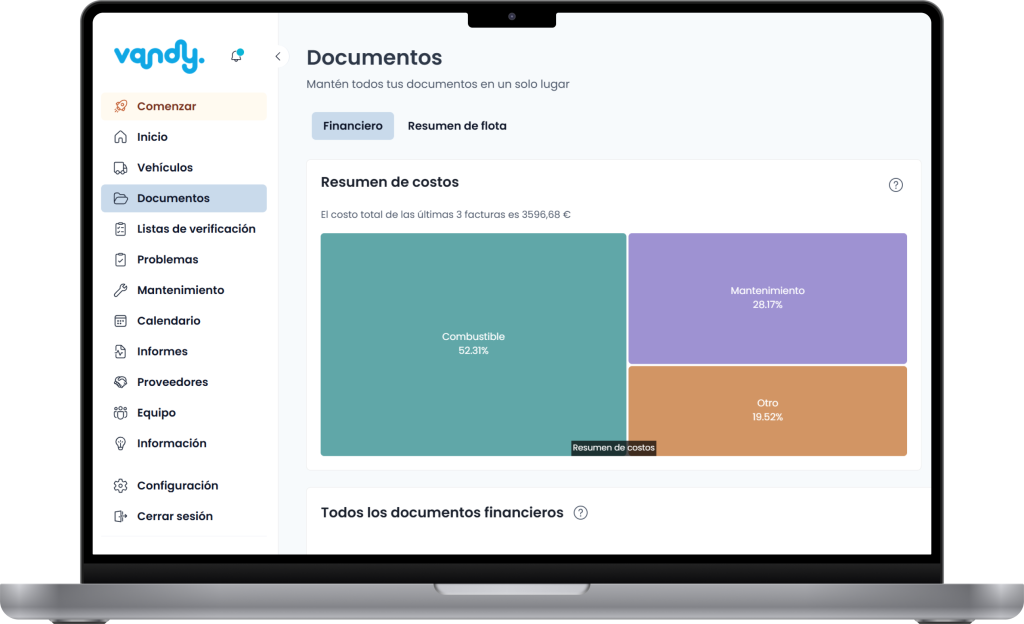 Imagina que tienes una flota de 10 furgonetas. Después de realizar un seguimiento de los gastos en Vandy, te das cuenta que dos vehículos cuestan mucho más en mantenimiento que el resto. Con esa información, decides retirar uno antes de tiempo y ajustar el programa de mantenimiento para el otro. En el plazo de un año, has ahorrado miles de euros en facturas de reparación, evitado tiempos de inactividad inesperados y liberado el presupuesto para un vehículo más nuevo y fiable.