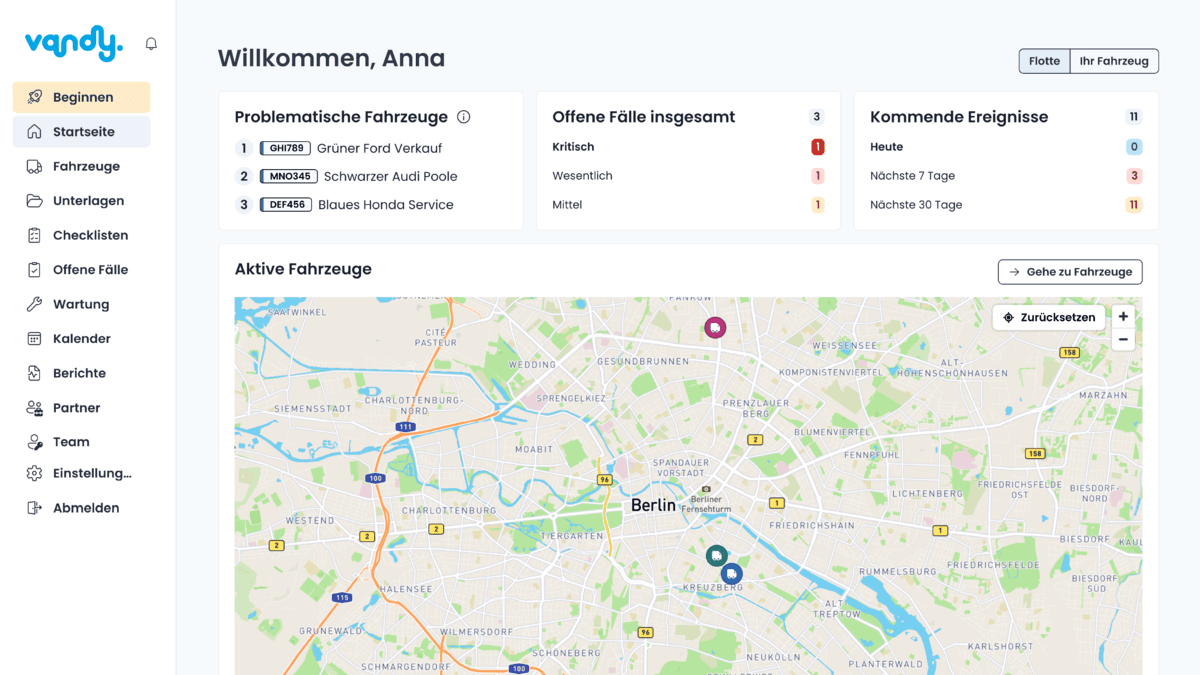 Vandy ist auf Flotten ausgelegt, die aus leichten Nutzfahrzeugen (NKWs) wie Vans und Pickups sowie PKWs bestehen. LKWs, Busse oder Spezialfahrzeuge wie Baumaschinen oder Off-Highway-Fahrzeuge unterstützen wir nicht. Wenn deine Flotte leichte NKWs und PKWs umfasst, ist Vandy die ideale Lösung, um diese effizient zu verwalten und zu warten!